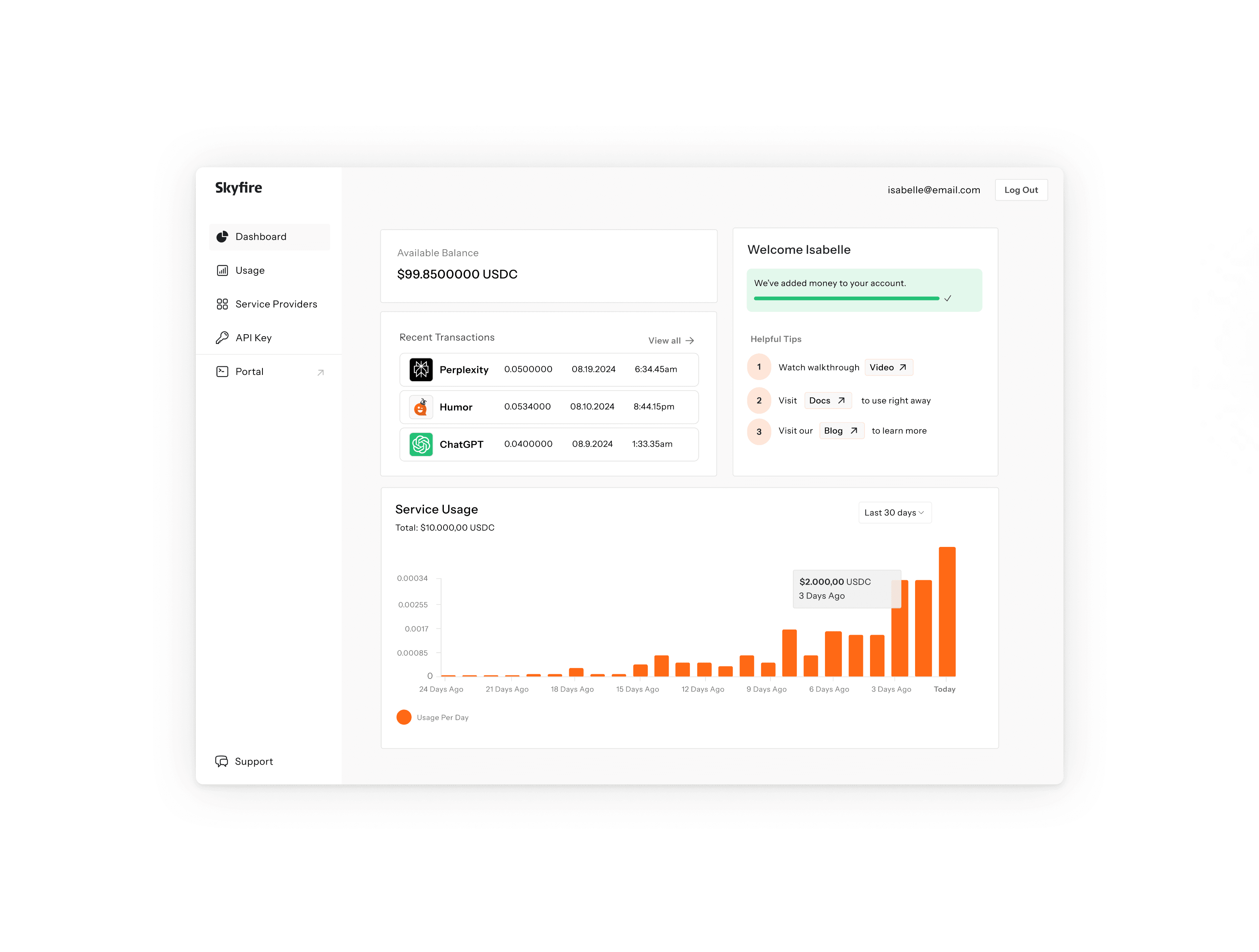 We redesigned the full design system and dashboard for Skyfire. We built out a custom system that would scale as the product evolved.